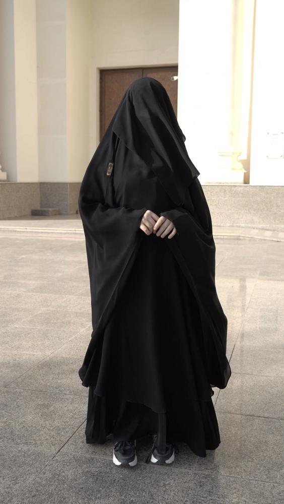 • الأكمام واسعة وطويلة، مما يتيح حرية الحركة وراحة اليدين، ساده حول المعصمين لمزيد من التغطية والثبات وتوفير الاحتشام اللازم.