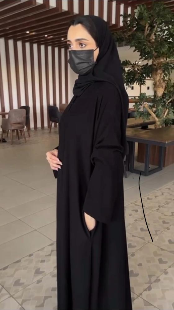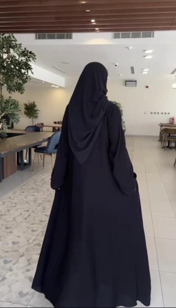 طول العباية يؤخذ من الكتف الى أسفل الكعبين (من الأمام)