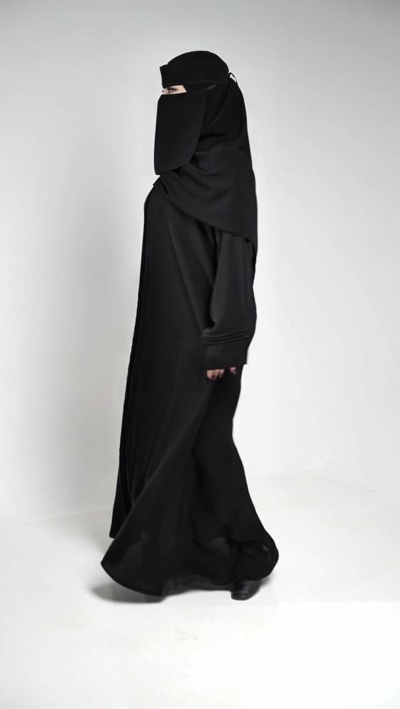 طول العباية يؤخذ من الكتف الى أسفل الكعبين (من الأمام)
